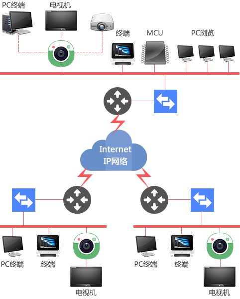 2.  多种网络模式接入,接入多点会议的会议终端可以全是以太网接入,也可以为ISDN接入;