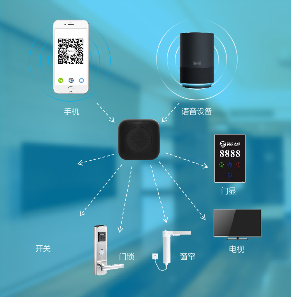 主机是整套智能酒店的核心设备,它将所有的智能设备联系在一起。随时通过移动终端或语音设备对客房相关设备进行控制。可将多种智能设备进行逻辑联动,给客人带来温馨舒适的体验环境下实现节能。